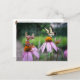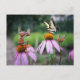 En akorn-elf tar en fjäril bild på en blomma. - roligt vykort för postkorsning