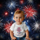 Fira din lilla pojkes första födelsedag på självständighetsdagen med en stjärnor och ränder patriotisk tema T-shirt. "En amerikansk kille" bidrar till det patriotiska temat med röd, vit och blå amerikansk självständagsdag firande. Designen har med element och tema av amerikansk stolthet med fyrverkerier, glass, makaron, godis, ballonger, kul och skoj. Baksidan har en matchande konst.