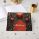 En aning gotiska, hjärtan och evig anslutning. Utformningen har en mörk, elegantens bakgrundsdesign som omedelbart uppmärksammas. Flera ljusa röda hjärtan, vissa tycks ha blivit tårdroppar, häng från delikata, tunna strängar och ge kortet en lekfull och romantisk beröring. Centrumet domineras av ett hjärtligt designat ram med ett rött insida, dekorerat med ett känsligt ro mönster som symboliserar kärlek och passion. Vid grund, lush bouquets i röd ros med lush grey adorn kortet, vilket underskattar den romantiska atmosfären.