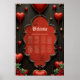 En aning gotiska, hjärtan och evig anslutning. Utformningen har en mörk, elegantens bakgrundsdesign som omedelbart uppmärksammas. Flera ljusa röda hjärtan, vissa tycks ha blivit tårdroppar, häng från delikata, tunna strängar och ge kortet en lekfull och romantisk beröring. Centrumet domineras av ett hjärtligt designat ram med ett rött insida, dekorerat med ett känsligt ro mönster som symboliserar kärlek och passion. Vid grund, lush bouquets i röd ros med lush grey adorn kortet, vilket underskattar den romantiska atmosfären.