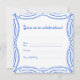 Det här inbjudan-kortet kan användas för att meddela alla typer av party, inklusive babyduschar, möhippor, födelsedagsfester, gender som visar party och alla andra typer av gruppsamlingar. Med ett allmänt tema med bögar och snöre kant i en elegant blå och vit färg-kamera är denna friska design mycket dekorativ och kommer att imponera på alla era inbjudna party. Fyll i informationen om party på baksidan med det tomma linjerna. Andra liknande konstruktioner och färg-kombier finns i min butik.