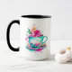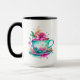 Söt vintage grafik av ett kaffe kopp med rosa blommor och citatet "En annan vacker dag att börja om".
