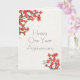 Det här 5-tums x 7-tums vikbara hälsningskortet har vita röda blommor på en elfenbensbakgrund med en platshållare för att lägga till valfri namn. Anpassadet hälsning är "Lycklig ettårsdagen". Baksidan, "Grattisar (valfri namn) Du har gjort jobbet och det visar!"