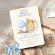 Denna "En babypojke är under tillväxt Blå Fluga Baby Shower-inbjudan" erbjuder ett unikt och lekfullt sätt att inbjuda gäster att fira den kommande ankomsten av en babypojke. Designen har ett roligt och lättsamt tema centrerat kring frasen "En babypojke är under tillväxt", som kombinerar bilden av en pastellblå babyflaska och en skummig ölmugg. Detta skapar en visuellt engagerande och minnesvärd inbjudan som säkert kommer att glädja dina gäster. Det är mer än bara ett kort; det är ett kreativt meddelande som bygger upp förväntan inför din speciella dag.