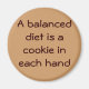 Cute magnet i choklad chip cookie färg med en roligt som säger..En balanserad kost är en kaka i vardera handen!