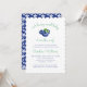 Den här babyduschinbjudan har ett sött och lekfullt blåbärstema. Bakgrunden är vit, dekorerad med blåbär och grönt löv på baksidan är en vit blomma mönster på en blå bakgrund. Längst upp, i ett roligt, ett kursivt stil-typsnitt, står det i texten: "En bären söt baby är på väg!" Nedan, i en blandning av elegant och lekfullt typsnitt, finns information om evenemanget, inklusive honungens namn, datum, tid, plats, OSA och presentregisteruppgifter. Den övergripande utformningen är charmerande, varm och perfekt för att fira ett pojke kommande ankomst!
