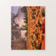 Härlig nedgångsoluppgångplats med livlig höst löv. En rolig utmaning med alla nätt löv!