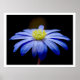 En blå blomma mot svart poster