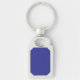 en blå vägg med klocka på den rektangulärt silverfärgad nyckelring