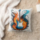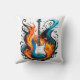 En påfallande blå gitarr står djärvt mitt i vibrerande flammor, med musik noter som spirar runt och som förkroppsligar rock and roll passion.