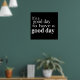 Inspirationellt talesätt, motiveringscitat av okänd författare - det är en bra dag att ha en bra dag! Vitt teckensnitt på svart. Du kan ändra den svarta bakgrunden färg om du vill, bara använda anpassningsfunktionen och ta med dig plockan. Skaffa det i olika storlekar, för inspiration, initiativ, lycka och framgång. Lycka är ett val! Ha en bra dag.