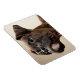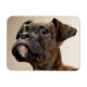En Brindle Boxer-valp tittar upp konstigt. Magnet