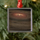 En brun dvärg omgiven av en snurrande skiva julgransprydnad metall