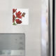 en bukett med röda tulpaner besöks av en monark magnet