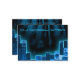 En mall för cooladj-businesscard med en bedöva design av flurocent glödande högtalare för en stor högblått och blåttlaser tänder i natthimmlen som kombineras med svart panelljusmusik noter på en mörk bakgrund.
