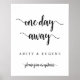 Modern rustic, en dag kvar, välkommen till förfest för bröllop, affisch i svart script.