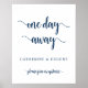 Modern rustic, en dag kvar, välkomstskylt för bröllopsrepetitionens middag, i marinblå script.