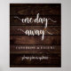 Modern rustic, en dag kvar, välkomstskylt för repetitionsmiddag inför bröllop, med tema mörkt stugträ
