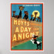 Vintage teater poster för en dag och en natt med flera katter på en tegelvägg som tittar ner vid en hund och dess ägare. Hund försöker desperat ta sig till kattarna och kattarna har bara ett bra leende skratt!