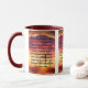 Mugg har en daglig tacksam bön över ett bibliskt bild som visar 3 kor med soluppgång med en färgstark bakgrund. Behållaren och fälgen är glaserade i motsvarande färg i 11 eller 15 uns stora mikrovågsugn och säker keramikkonstruktion av diskmaskiner.