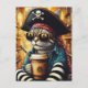 AI producerade konst av en gynnsam katt pirat i en vintage bokbutik med kaffe