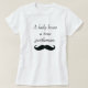 En rolig t-skjorta med en mustasch och ordstävet, "en dam älskar en riktig gentleman.",