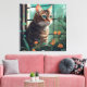 Denna digitala konst porträtt fångar roligten och äventyrlig personlighet hos ett tabby katt. I teckningen visas ett tabby katt med den ljusa grönten ögon, sitta på fönsterbänk och omgiven av växter och blommor. Katten ser ut med ett nyfiket uttryck som kommer att charma alla tittare. Bilden är en illustration som är gjord med fetstilt färg och en stiliserad teknik, som skapar den ett utmärkande och attraktivt biet i hemmet. Ge ditt område lite glädje och med den här teckningen och låt den nyfikna katten vara en trevlig och livlig del av ditt hem.