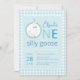 En dum gås blå födelsemössa pojke ettårsdag inbjudningar