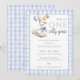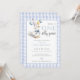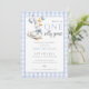 Denna charmiga födelsedagsinbjudan till ettårsdagen har en söt liten gås som håller ballonger och en blå rutig bakgrund. Designad av Thisisnotme