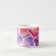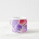 En söt Espressos-kaffe mugg, med en vacker vattenfärgdesign av blommor i skuggor av rosa, mauve, lila och blått, från en handmålad design av Judy Adamson.