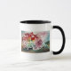 Kopp med en vattenfärgmålning av amaryllisen i en crystal bunke med svartklippning runt om kanten och handtaget av koppen.