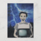 En elektrifierande stil-kollage av en kvinna, ett tv-set och en belysning med el torn och blå himmel med ljusare AI-genererad konst