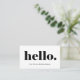 Dessa vita och toppen, svarta och vita affärskort säger helt enkelt "hej". i fet, modern svart text på vit bakgrund. Lägg enkelt till din mediekontaktinformation i social på baksidan.