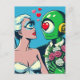 En Eyed Alien Woman och Grönt Robot i Kärlek Vykort
