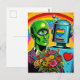 En Eyed Grönt Alien och en Robot Bröllop Vykort