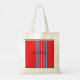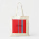En färglös röd och blå mönster omgiven av en blu tygkasse