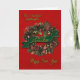 En festlig julkran med ett grönt band. Uppsättningen mot Christmasy en röd bakgrund detta är en underbar julkort för din Goddaughter.