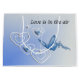 En fjäril och hjärtan med musik noter i kanten på blå bakgrund. 100 % anpassning. Klicka på knappen CUSTOMIZE om du vill lägga till, flytta, ta bort, ändra storlek på eller ändra något av typsnitten eller bilderna.