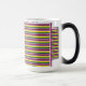 Utformningen har en mönster som består av vågrät rand i olika färg, inklusive gult, grönt, lila och rosa. Mellan dessa färgader är rand tunnare vitt rand. Varje färgad läggs rand i med en sekvens av små punkter som är jämnt fördelade längs rand. Punkter visas i färg i kontrast till den rand de är på, t.ex. vita prickar på ränderna lila och grönt och svarta prickar på ränderna gult och rosa. Detta repetitiva mönster skapar ett visuellt stimulerande struktur som skulle kunna användas för bakgrunder, textilier eller annat inslag på grund av dess pulserande färg och rytmiska punktsekvenser.