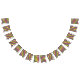 Utformningen har en mönster som består av vågrät rand i olika färg, inklusive gult, grönt, lila och rosa. Mellan dessa färgader är rand tunnare vitt rand. Varje färgad läggs rand i med en sekvens av små punkter som är jämnt fördelade längs rand. Punkter visas i färg i kontrast till den rand de är på, t.ex. vita prickar på ränderna lila och grönt och svarta prickar på ränderna gult och rosa. Detta repetitiva mönster skapar ett visuellt stimulerande struktur som skulle kunna användas för bakgrunder, textilier eller annat inslag på grund av dess pulserande färg och rytmiska punktsekvenser.