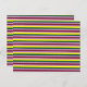 Utformningen har en mönster som består av vågrät rand i olika färg, inklusive gult, grönt, lila och rosa. Mellan dessa färgader är rand tunnare vitt rand. Varje färgad läggs rand i med en sekvens av små punkter som är jämnt fördelade längs rand. Punkter visas i färg i kontrast till den rand de är på, t.ex. vita prickar på ränderna lila och grönt och svarta prickar på ränderna gult och rosa. Detta repetitiva mönster skapar ett visuellt stimulerande struktur som skulle kunna användas för bakgrunder, textilier eller annat inslag på grund av dess pulserande färg och rytmiska punktsekvenser.