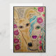 En flicka och hennes greyhound, galgo, piska eller glöd som är målad på bruna pappra i vattenfärg och bläck.