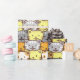Roligt och söt omslagning av pappra egenskaper är mönster av feta och färgstarka katthuvuden.