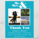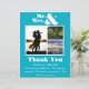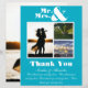 Denna chic och det moderna Teal Blue Mr. & Mrs. Tack You Card är ett vackert sätt att uttrycka er tacksamhet för dem som firade er speciella dag. Med ett 3-fotokollage på framsidan och ett fantastiskt foto från bröllop på baksidan, fångar kortet kärnan i din kärlek-artikel i en tidlös design. Kortet är fullt ut anpassade, vilket gör att du kan lägga till namn och datum för bröllop för personlig beröring. Bakgrunden till elfenbensgrädde parad med delikat grått-bokstäver skapar ett sofistikerat och klassiskt utseende, perfekt för att komplettera alla bröllop-teman, från rustik till modern. Kortets innersta utformning erbjuder ett meningsfullt sätt att tacka dina gäster, med utrymme på insidan för att inkludera ett personligt uppskattningsbudskap. Det är en vacker keepé, inte bara för er utan också för dem som delade er i firande och lämnat dem med en varaktig påminnelse om er speciella dag.