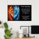 En sammanslagning av brand och is framställs i denna konstnärliga representation av två händer som når ut. Isigen blå hand, som snurrar med frost och självmord, symboliserar klokhet och tydlighet. Den eländiga orangen och röda handen, som svänger med lågor och rök, symboliserar värme och passion. Bakgrunden är en övertoningsblandning av mörk, mjuka toner, som framhäver kontrasten. Ljuseffekter framhäver det grundläggande temat. "Fire and Ice" är överst i djärv, modern typografi.