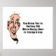 En lustig gammal man tecknade figurer med bara några hårstrå på huvudet och två tänder och leende ögon med ett långt smalt skägg. Texten säger: "Du vet att du är gammal när Lycklig-timmen tar en karta"