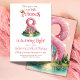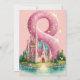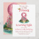 Fira din lilla prinsessas åttonde födelsedag med denna förtrollande rosa slott-inbjudan! Med en elegant siffra "8" och det söta meddelandet "Vår lilla prinsessa fyller åtta", fångar denna inbjudan magin på hennes speciella dag. Perfekt för en kunglig födelsedagsfest, sätter denna charmerande design en drömsk ton för familj och vänner. Anpassa med festsdetaljer och gör dig redo för en dag full av glädje och under som passar en prinsessa!
