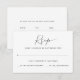 Elegant enkel design med modern kalligrafi och typsnitt. Det finns en gästräknare för en gäst att svara. Baksidan har ett måltidsval och formulering för matallergier.