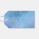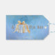 Blå vattenfärgsbakgrund med en presentruta centrerad i Text som säger "A Gift (box) åt dig" Guld faux guld glitter ram