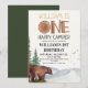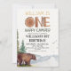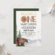 Söt och unik skog, björn - en glad campare - 1-års födelsedagsinbjudan.